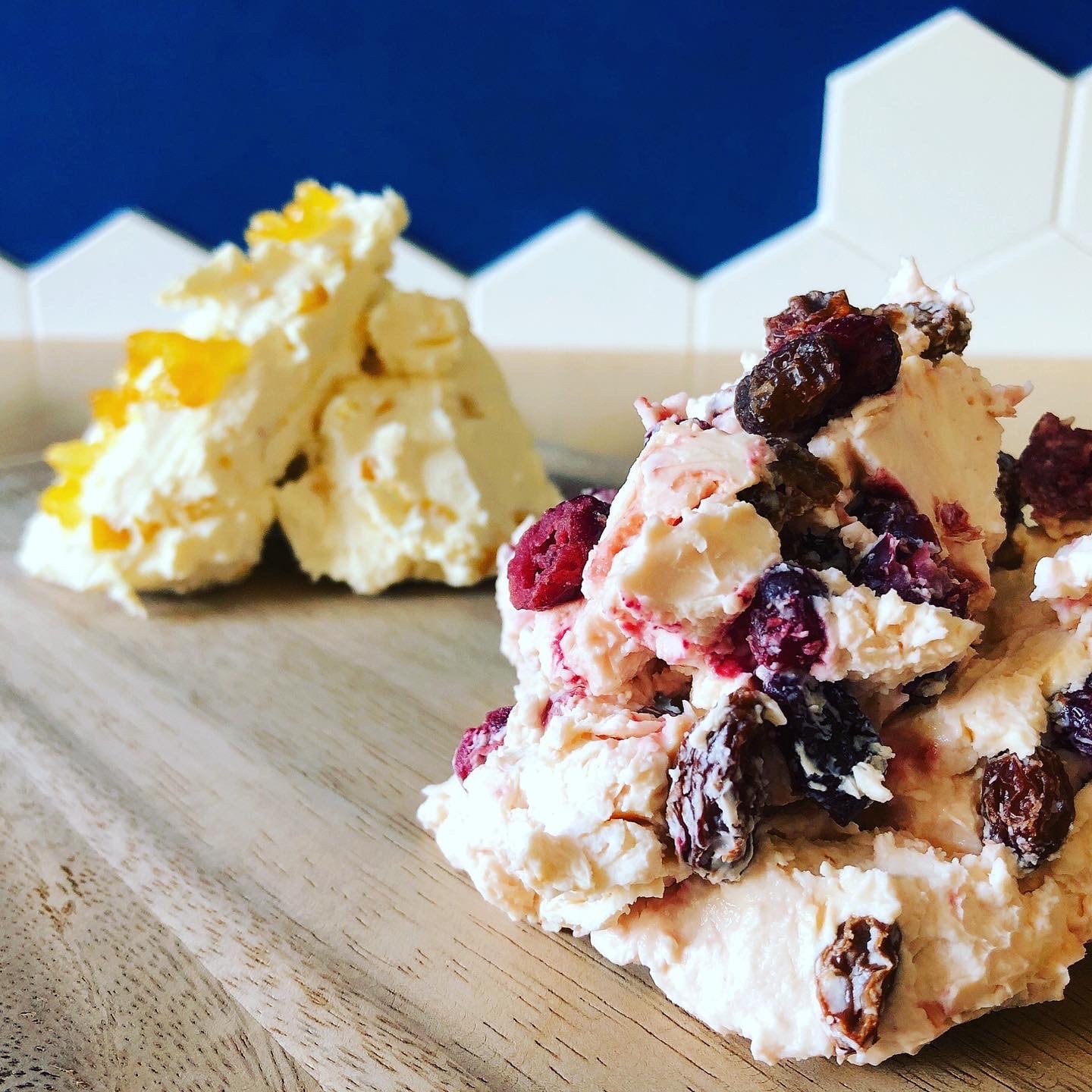 イギリスを代表する世界3大ブルーチーズの一つ。ホロホロとしていますが、口の中に含むとねっとりとして、外観の黄色さ通り濃厚なバターのような味わいが広がります。 他の3大ブルーチーズのロックフォールやゴルゴンゾーラに比べると、見た目ほどそこまで食べた時の青カビ感は強くなくて、意外と食べやすく、バランスのとれたチーズだと思います。 食べるとホロホロするということは、カットする時も崩れやすい性質のため、たまに切った際、土砂崩れのようにチーズが崩落することがあります。 慎重にかつ思い切りよく切らないと、過去何度か大惨事になりました。 ある意味、チーズ屋泣かせですが、おいしいのでできるだけ仕入れていきたいです。 数量に限りがありますが、ぜひお楽しみください☆ 【イギリス産】100g